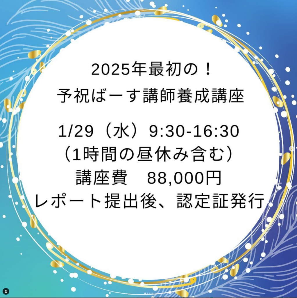 2025年最初の予祝ばーす講師育成講座開催します!