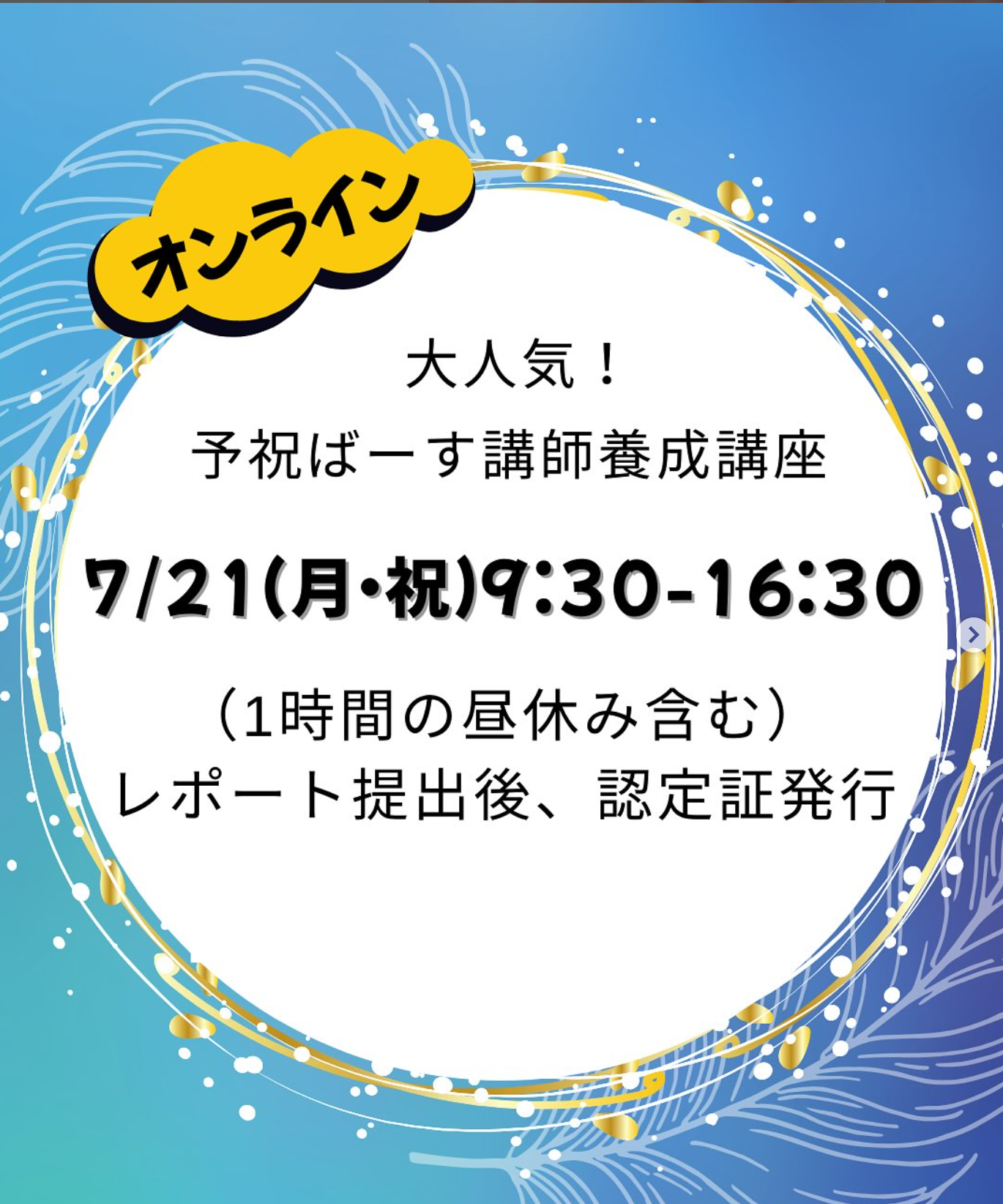 その「予祝ばーす講座」を開催できるようになる講師養成講座を7月も開催します!