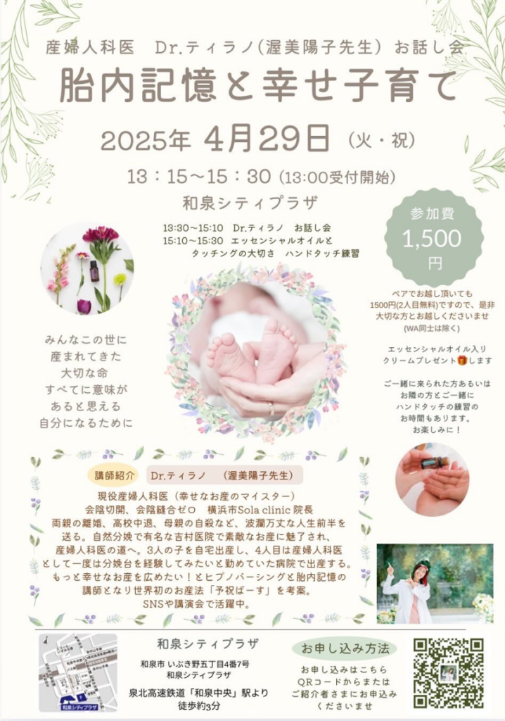 4/29に大阪府和泉市でお話会『胎内記憶と幸せ子育て』を開催させていただきました! 参加してくださった方はなんと100名越え😆 3-4年ほど前に、アメリカ発祥のヒプノバーシングと出会い、これを世に広めたい!と張り切って説明会を企画しましたが、お申し... -